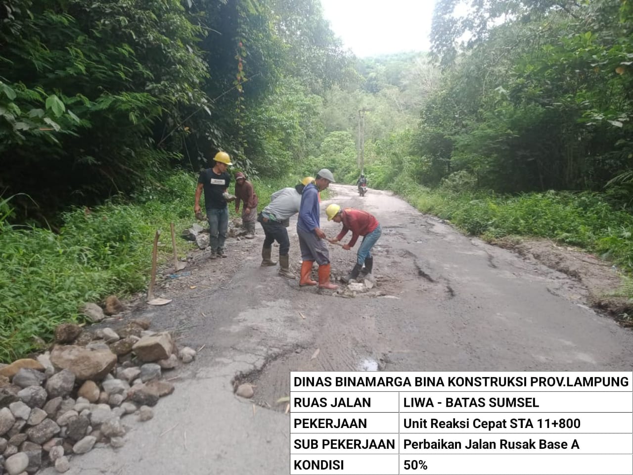 Pemerintah Provinsi Lampung terus mempercepat perbaikan jalan di berbagai wilayah guna meningkatkan konektivitas dan kenyamanan masyarakat. Hingga Sabtu, 15 Maret 2025, pengerjaan jalan masih berlangsung di sejumlah titik, di antaranya ruas Kalirejo – Bangun Rejo di Lampung Tengah; ruas Sp. Sidomulyo – Belimbing Sari di Lampung Selatan; ruas Kalirejo di Pringsewu; ruas Liwa – Batas Sumsel; ruas Kotabumi – Sp. Bandar Agung di Lampung Utara; serta pembangunan duplikasi Jembatan Way Sekampung – Kibang yang menghubungkan Metro dan Lampung Timur.