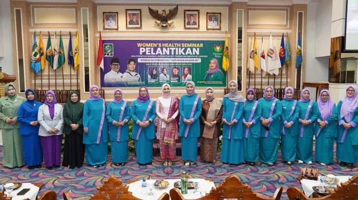 Wakil Gubernur Lampung, Jihan Nurlela, menghadiri pelantikan dan seminar Perempuan Bangsa bertema “Optimalisasi Peran Perempuan dalam Membangun Kesehatan dan Keadilan Sosial,” di Balai Keratun Lt.3, Sabtu (19/4/2025).
