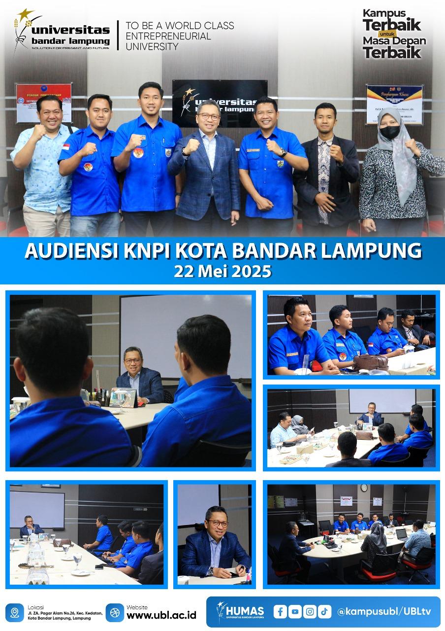 GAWAI.CO.ID — Dewan Pengurus Daerah Komite Nasional Pemuda Indonesia (DPD KNPI) Kota Bandar Lampung melakukan audiensi dengan Rektor Universitas Bandar Lampung (UBL), Prof. Dr. M. Yusuf Barusman, MBA, pada Kamis (22/5). Pertemuan ini digelar sebagai bagian dari upaya menjalin sinergi antara organisasi kepemudaan dengan institusi pendidikan tinggi dalam mendorong pengembangan potensi generasi muda di daerah.