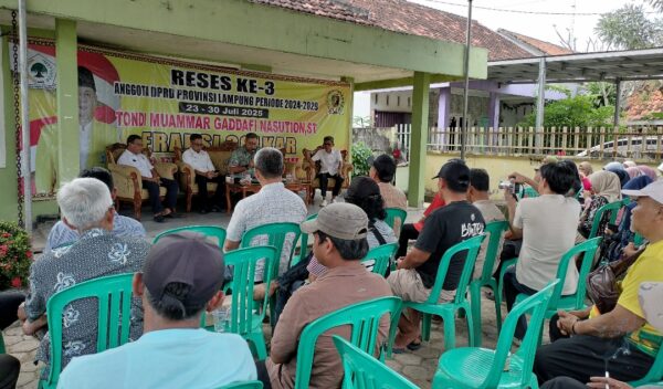 Metro — Lurah Hadimulyo Barat, Kecamatan Metro Pusat, Kota Metro, Agus Salim menyampaikan sejumlah keluhan dari warga di wilayahnya kepada Anggota DPRD Provinsi Lampung, Tondi Muammar Gaddafi Nasution dalam agenda reses yang berlangsung pada. Rabu (23/07/2025).