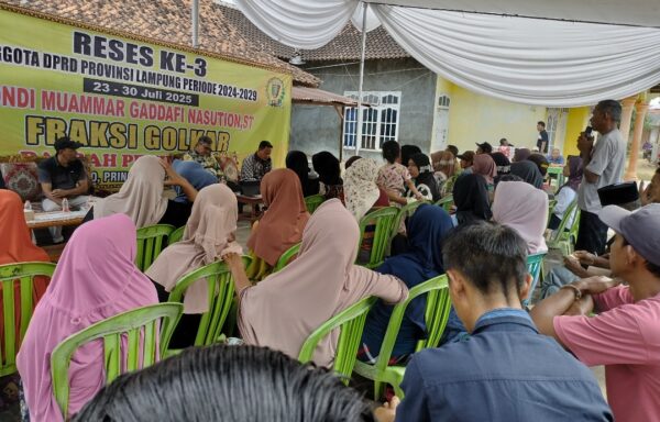 Pringsewu — Anggota DPRD Kabupaten Pringsewu dari Fraksi Golkar, Anton Subagyo, berharap kegiatan reses anggota DPRD Provinsi Lampung di Pekon Kediri, Kecamatan Gading Rejo, menjadi wasilah atau perantara terwujudnya jalan usaha tani yang telah lama diusulkan masyarakat.