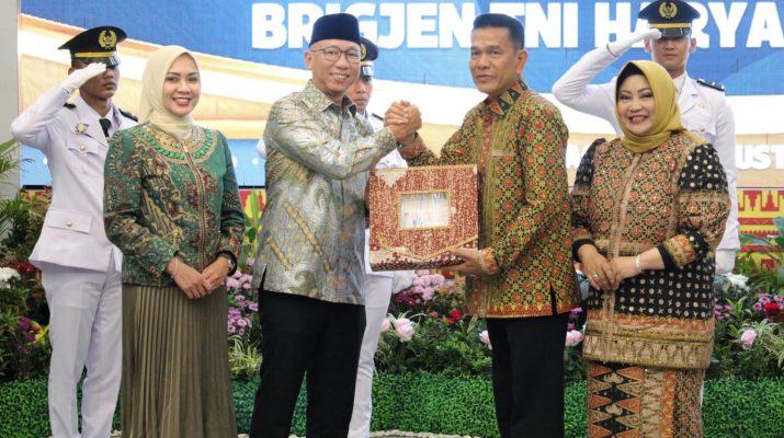 Di kesempatan yang sama, Gubernur Mirza mengucapkan selamat datang kepada Brigien TNI Haryantana sebagai Komandan Korem 043/Gatam yang baru.