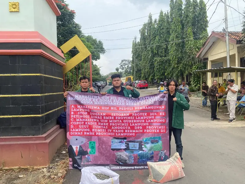 Dalam sebuah aksi damai yang digelar di Kantor Dinas Bina Marga Bina Konstruksi (BMBK) Provinsi Lampung, Kamis (11/9/2025).