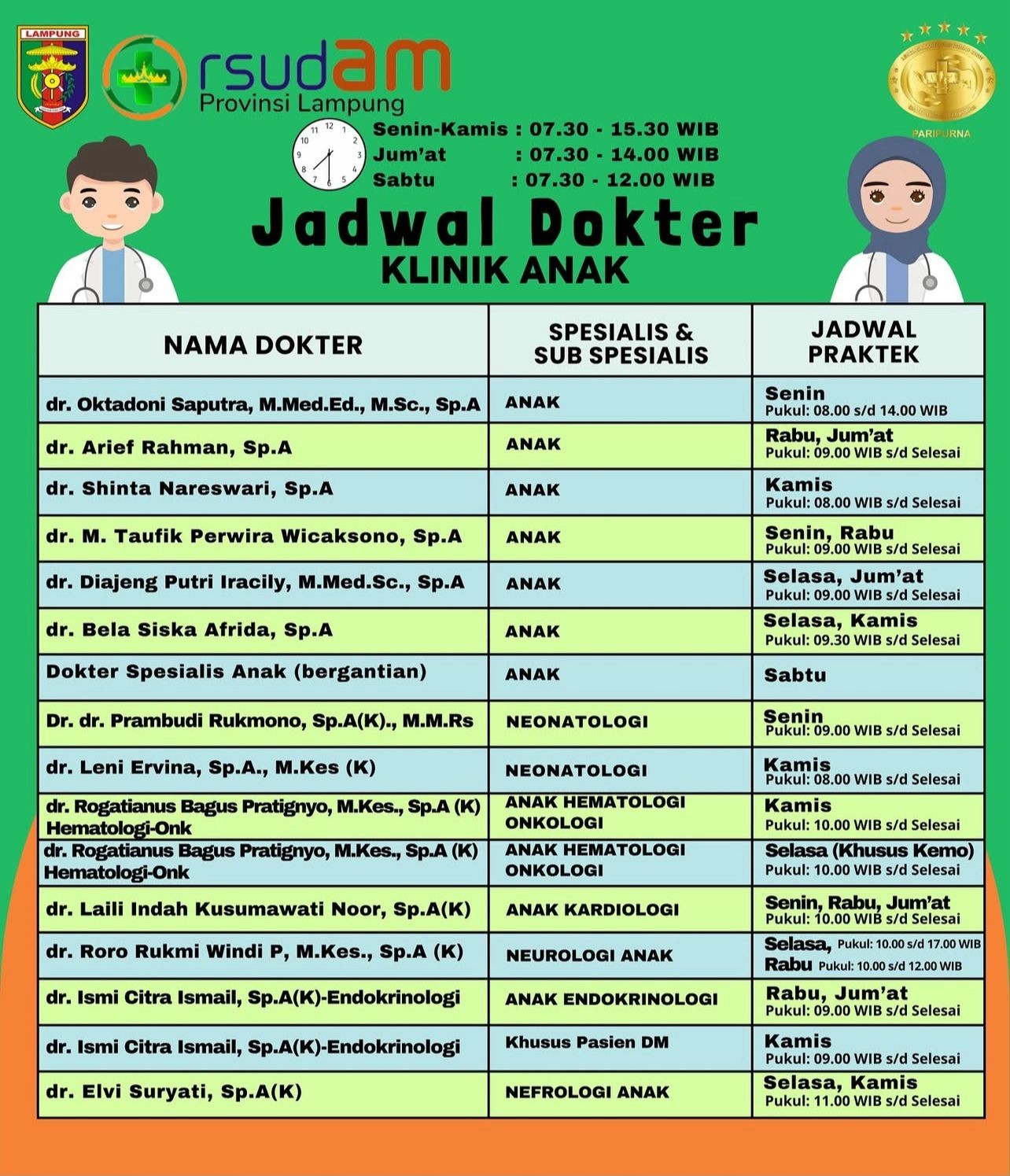 * Kotak saran: tersedia di area publik RSUD Dr. H. Abdul Moeloek