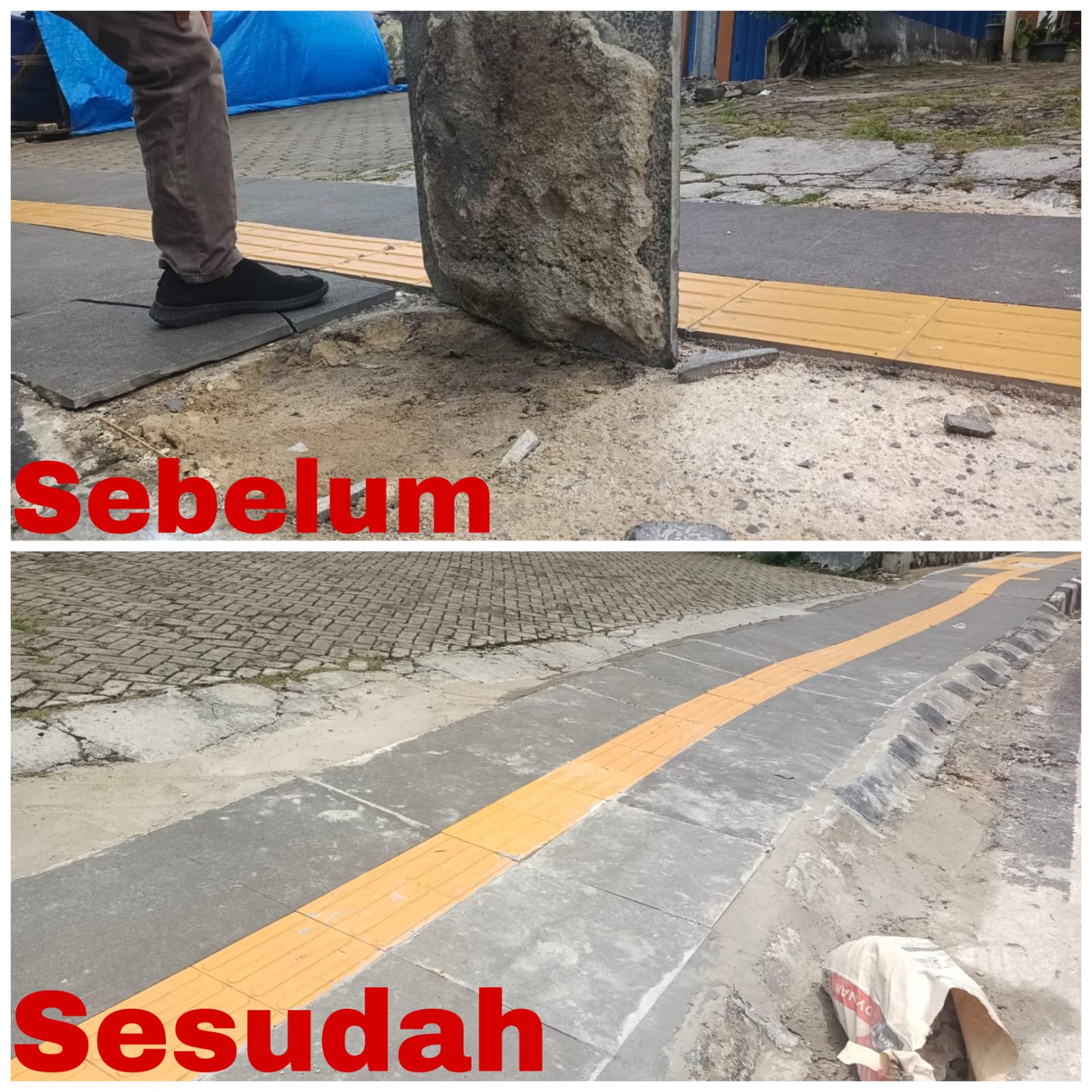 Trotoar di kawasan tersebut diketahui baru beberapa waktu lalu selesai diperbaiki.