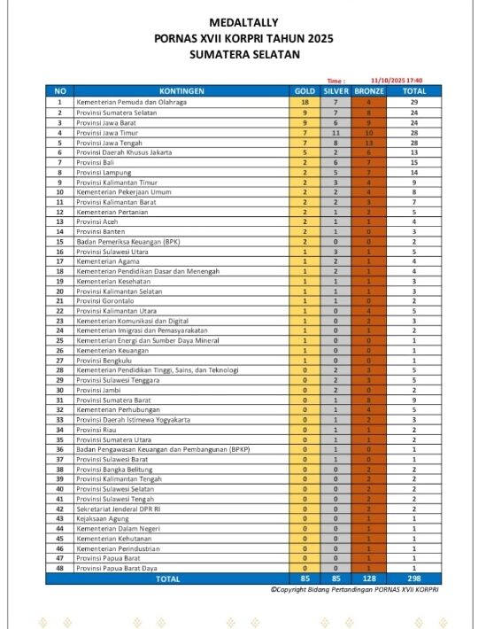 Dengan torehan medali dan semangat yang tak pernah padam, Kontingen Lampung membuktikan bahwa ASN bukan hanya simbol pelayanan publik, tetapi juga teladan dalam perjuangan, kedisiplinan, dan inspirasi bagi seluruh masyarakat.(Red)