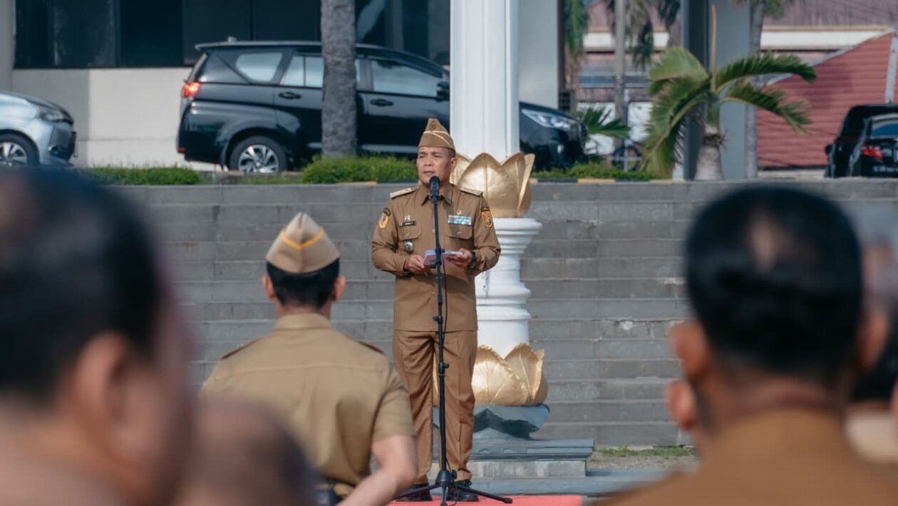 gawai.co.id – Gubernur Lampung yang diwakili Staf Ahli bidang Pemerintahan, Hukum dan Politik, Achmad Saefulloh memimpin apel mingguan di lingkungan Sekretariat Daerah Provinsi Lampung, di Lapangan Korpri, Senin (13/10/2025).
