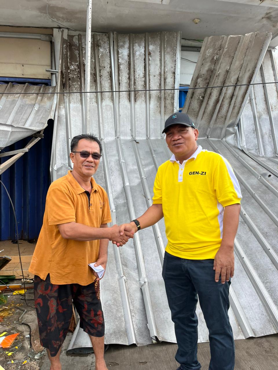 Pantauan di lapangan, Aprozi Alam sejak pukul 08.30 WIB tampak sudah mendata jumlah korban yang rumahnya porak-poranda. Bahkan, para warga, penjual kelontong, dan belasan pedagang kaki yang gerobaknya hancur karena tertimpa puing akibat bangunan toko-toko yang roboh. Sebagian warga mengaku, atap rumah mereka habis terbawa angin.