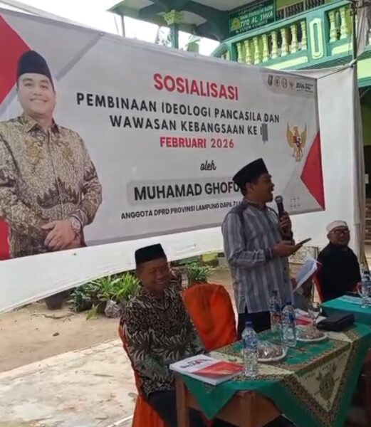 Gawai.co.id – Anggota Komisi IV DPRD Provinsi Lampung, Muhamad Ghofur, menggelar kegiatan Sosialisasi Pembinaan Ideologi Pancasila dan Wawasan Kebangsaan di Majelis Taklim Pondok Pesantren Al-Ihya, Kecamatan Kalirejo, Kabupaten Lampung Tengah, Minggu (15/02/2026).