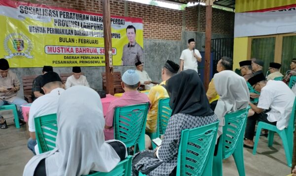 Gawai.co.id – Anggota DPRD Provinsi Lampung, Mustika Bahrum, menggelar Sosialisasi Peraturan Daerah (Sosperda) Provinsi Lampung Nomor 1 Tahun 2016 tentang Pedoman Rembug Desa dan Kelurahan dalam Pencegahan Konflik di Provinsi Lampung, di Desa Tanjung Agung, Kecamatan Way Lima, Kabupaten Pesawaran, Minggu (22/02/2026).