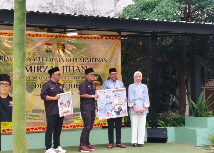 Gawai.co.id — Ikatan Jurnalis Pemprov (IJP) Lampung menggelar refleksi satu tahun kepemimpinan Gubernur Lampung Rahmat Mirzani Djausal dan Wakil Gubernur Jihan Nurlela, sekaligus meluncurkan koran dan buku edisi khusus di halaman Gedung Pusiban Pemprov Lampung pada Senin, (2/3/2026).
